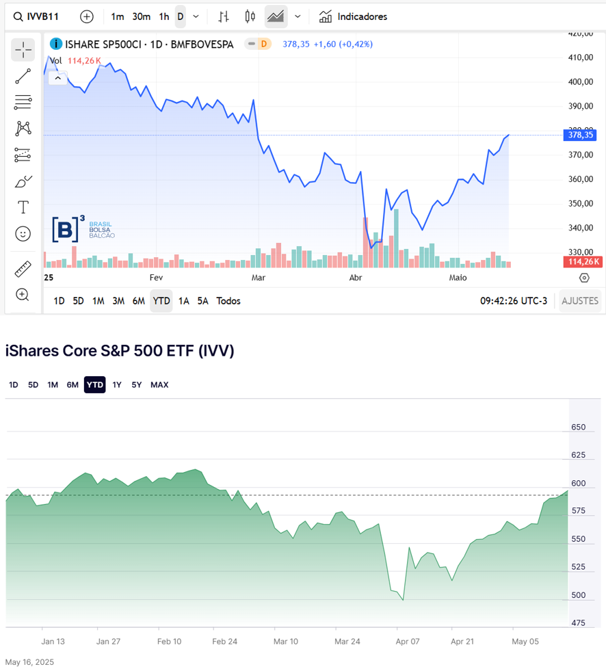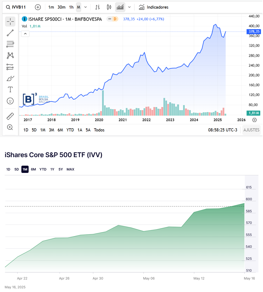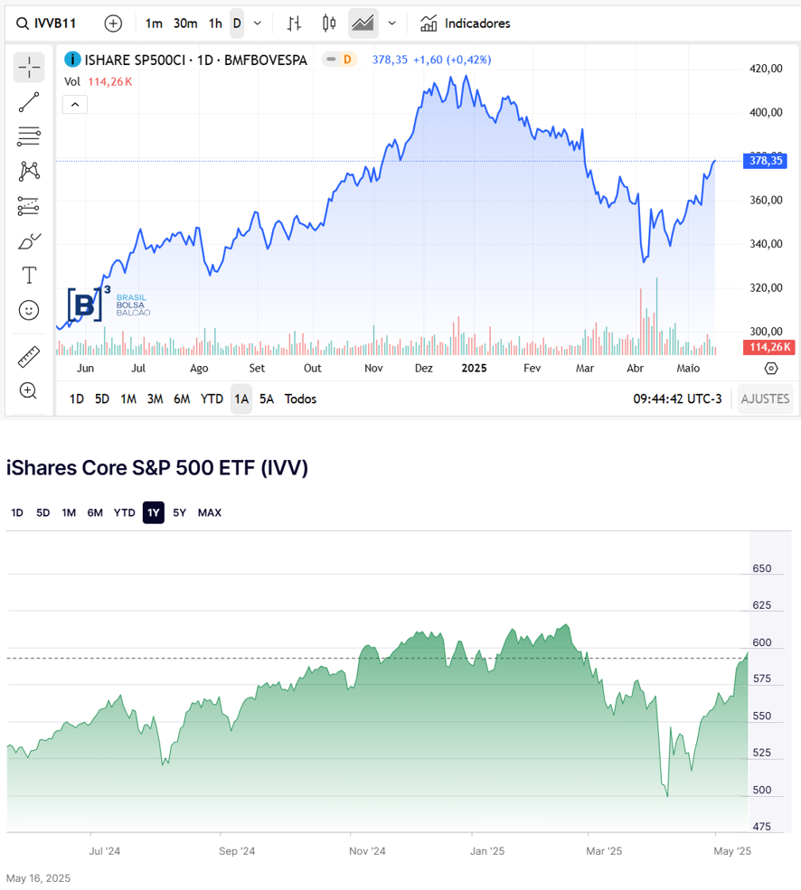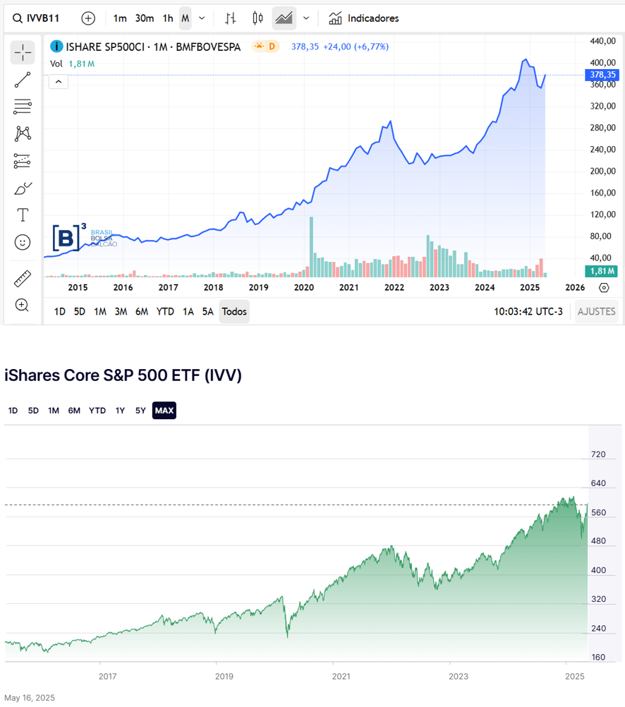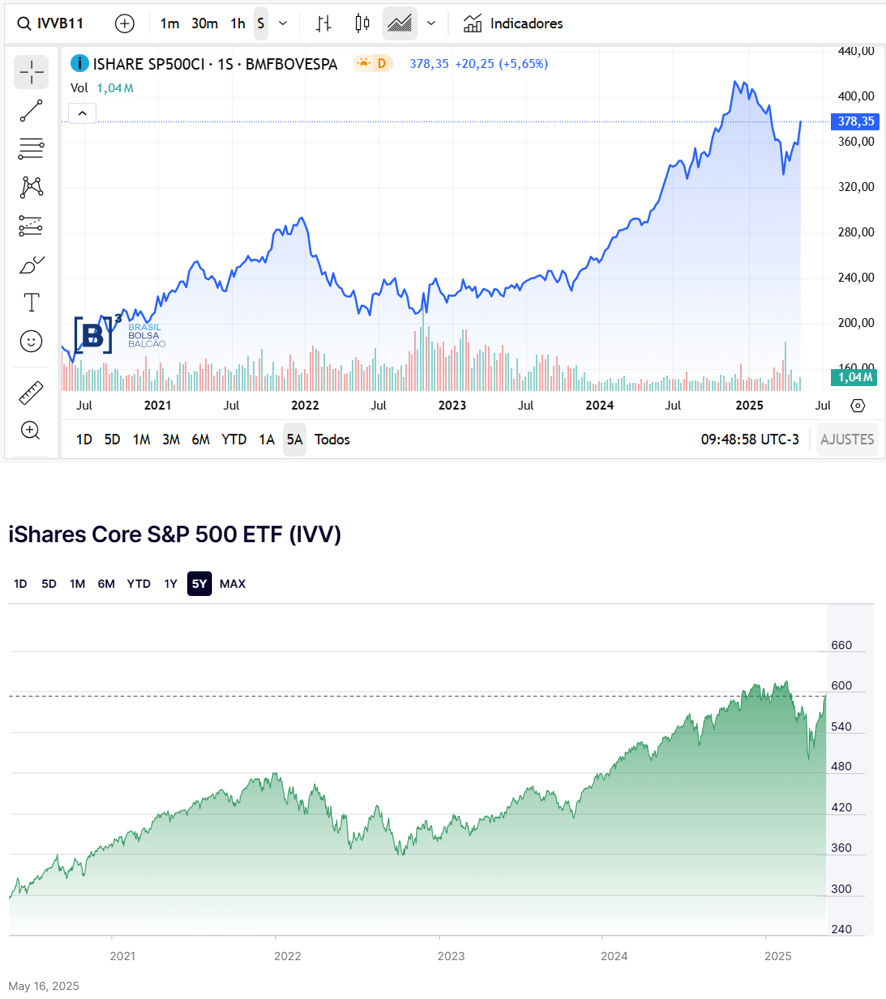 Segue abaixo comparativos dos gráficos, de IVV e IVVB11.